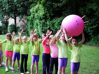 Een verkwikkende duik in het zwembad (en het buitenbad was echt wel koud), een gezellige picknick bij het speelplein, leuke spelletjes met reuzegrote ballen, vrolijke en zwierige danspasjes (waarbij dansleraar Ricardo doodleuk spagaat deed) én natuurlijk een grote portie vriendschap en plezier!