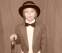 Tijdens de les muzische maakten we oude portretten. We trokken kleren en schoenen aan uit de tijd van toen en maakten statige foto's. Geen 'cheeeese', maar een serieuze blik en een kaarsrechte houding.