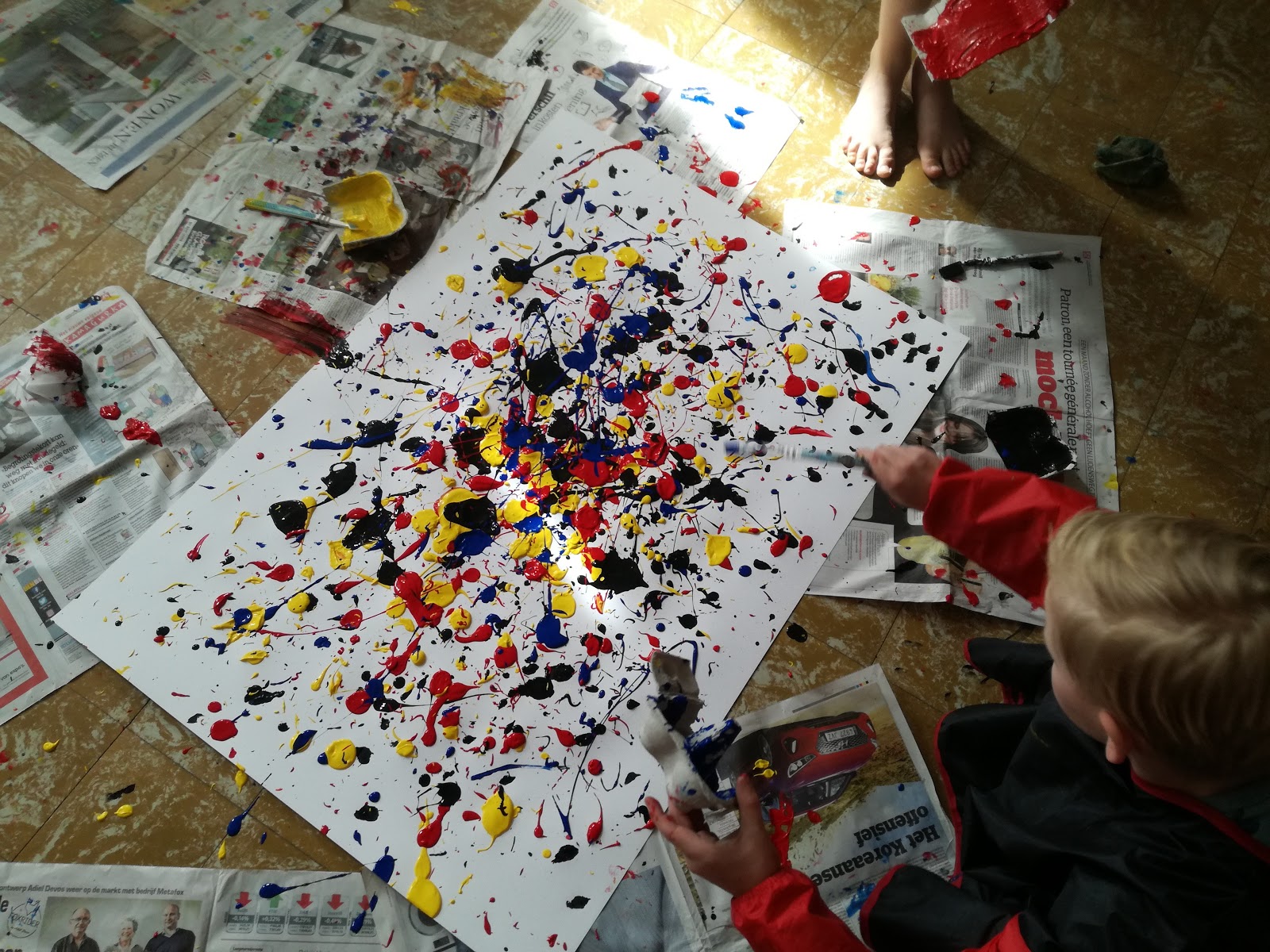 Vandaag verdiepten we ons in het werk van Jackson Pollock. We maakten kennis met 'action painting' en 'dripping'. Sommigen bekeken met open mond hoe hij te werk ging.