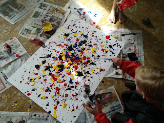 Vandaag verdiepten we ons in het werk van Jackson Pollock. We maakten kennis met 'action painting' en 'dripping'. Sommigen bekeken met open mond hoe hij te werk ging.